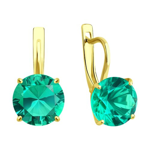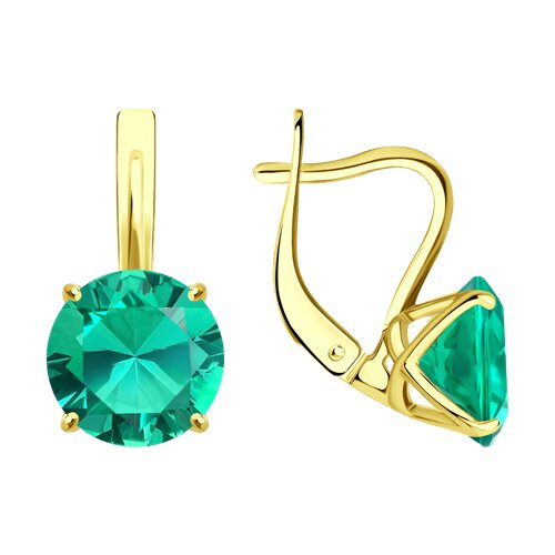 Серьги из желтого золота с изумрудами г/т выращенными колумбия SOKOLOV 3020716-2