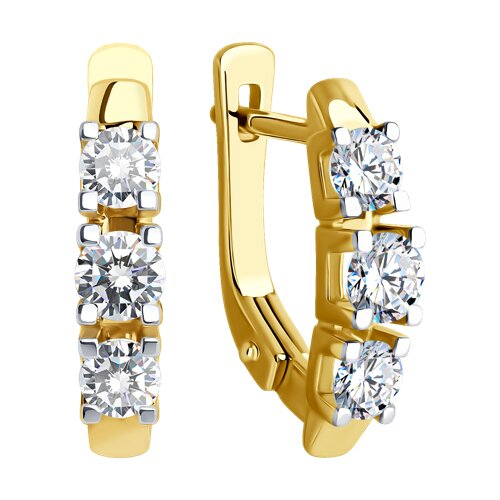 Серьги из желтого золота c выращенными бриллиантами и рубинами Diamant 53-220-02518-1