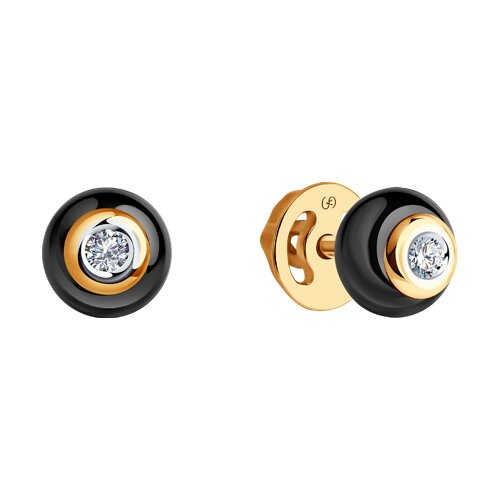Серьги из золота с бриллиантами и чёрными керамическими вставками SOKOLOV 6025069