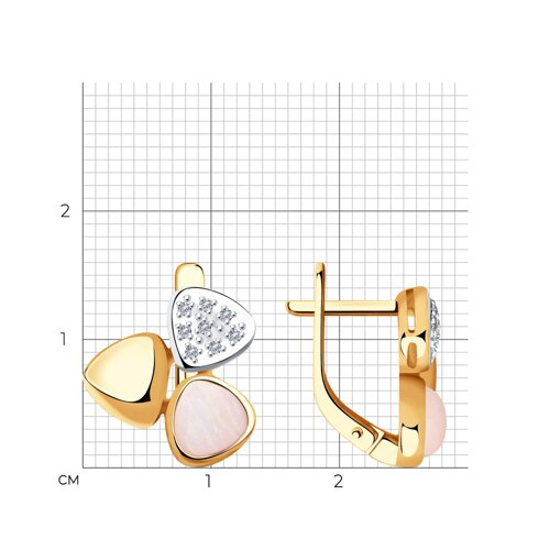 Серьги из золота с бриллиантами и дуплетами из натурального кварца и перламутра SOKOLOV 1021435-7