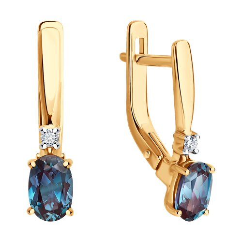 Серьги из золота с бриллиантами и г/т александритами Diamant 51-220-02339-1