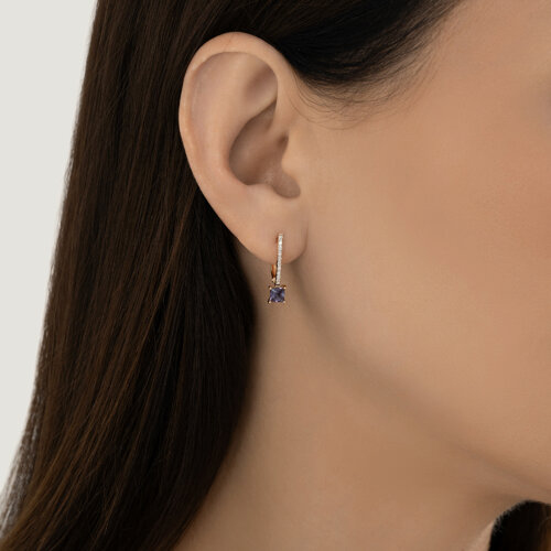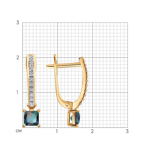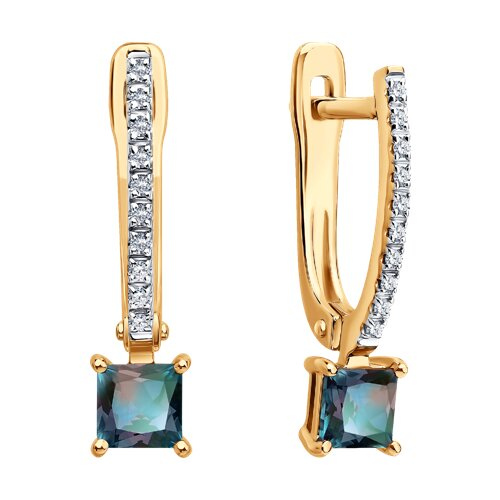 Серьги из золота с бриллиантами и гидротермальными александритами Diamant 51-220-02961-1