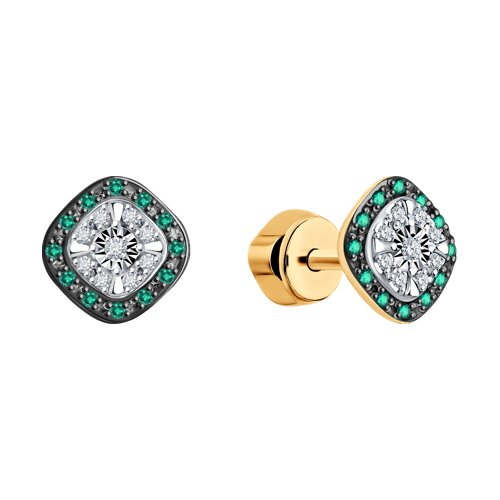 Серьги из комбинированного золота с бриллиантами и изумрудами SOKOLOV 3020558