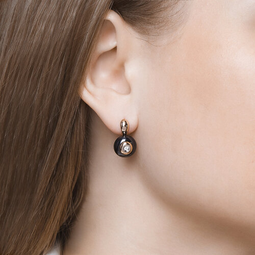 Серьги из золота с бриллиантами и чёрными керамическими вставками SOKOLOV 6025056