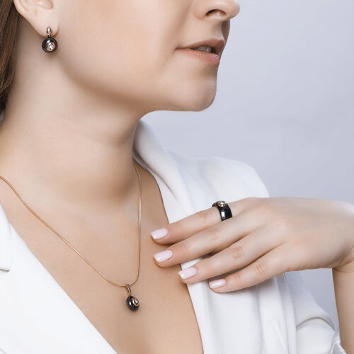Кольцо из чёрной керамики с золотом и бриллиантом SOKOLOV 6015010