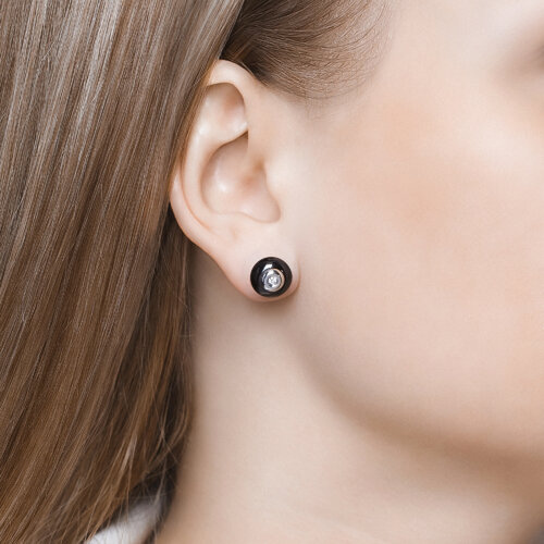 Серьги из белого золота с бриллиантами и чёрными керамическими вставками SOKOLOV 6025058