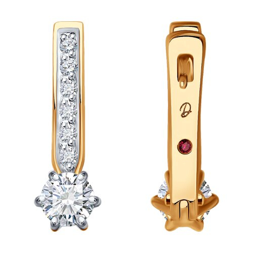 Серьги из золота с бриллиантом выращенным м рубином Diamant 51-220-02485-1