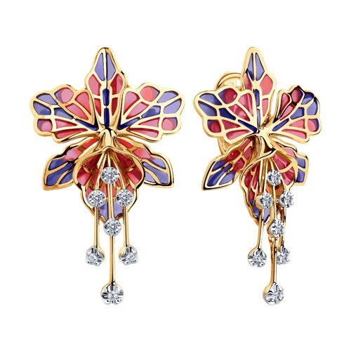 Серьги из золота с эмалью с бриллиантами SOKOLOV 6029007
