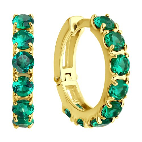 Серьги конго золотые пробы 585 с изумрудом гидротермальным SOKOLOV 728560-2