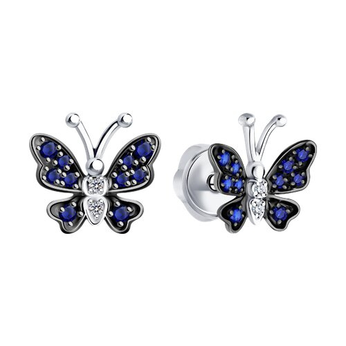 Серьги-пусеты из белого золота с бриллиантами и сапфирами SOKOLOV 2020827