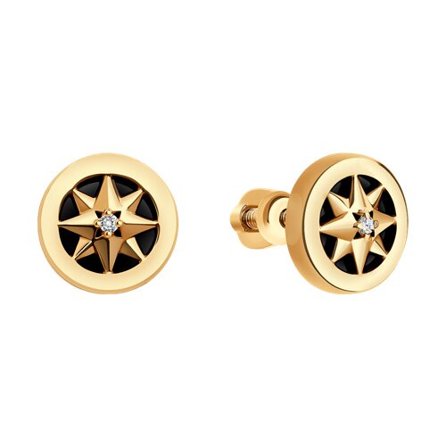 Серьги пусеты золотые пробы 585 с агатом SOKOLOV 72-00389