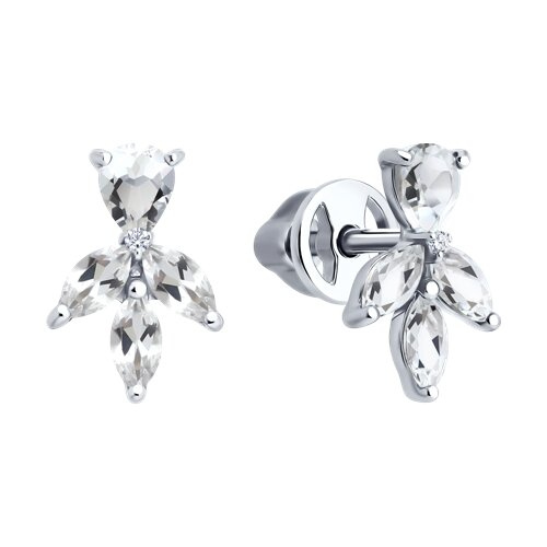 Серьги пусеты золотые пробы 585 с горным хрусталем SOKOLOV 72-00494-3