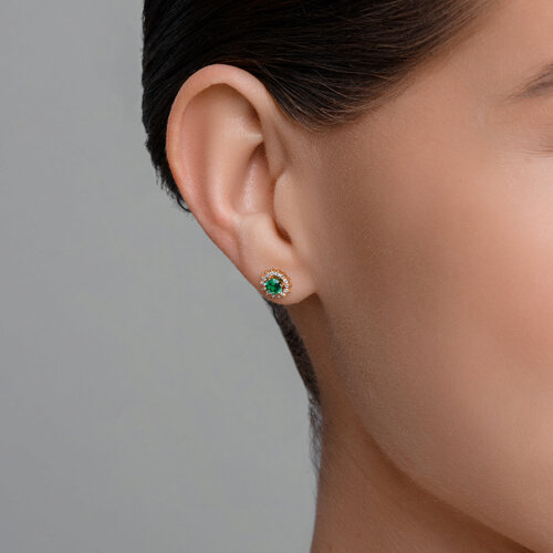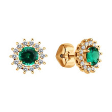 Серьги пусеты золотые пробы 585 с наноизумрудом SOKOLOV 728959