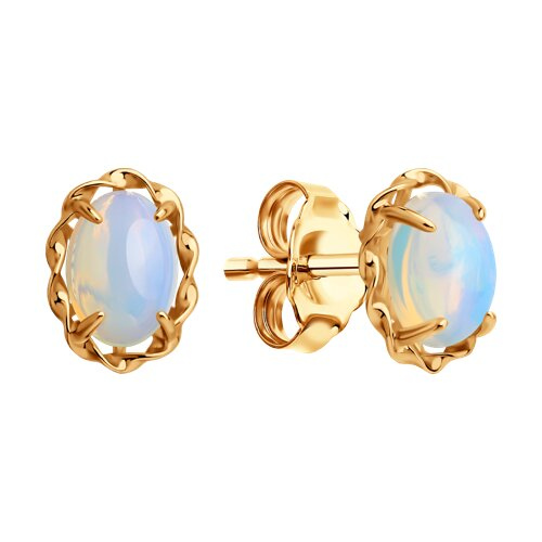 Серьги пусеты золотые пробы 585 с опалом SOKOLOV 729079