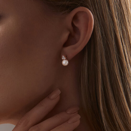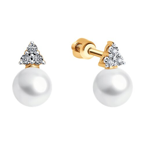 Серьги пусеты золотые пробы 585 с жемчугом SOKOLOV 79-20028