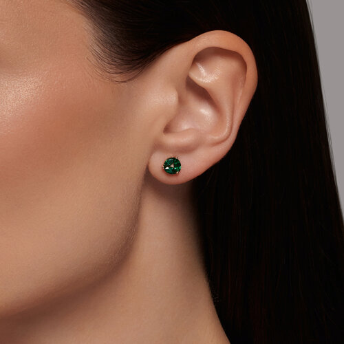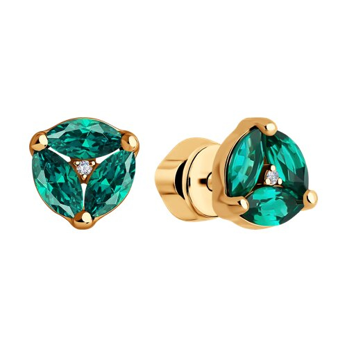 Серьги пусеты золотые пробы 585 с изумрудом гидротермальным SOKOLOV 72-00155
