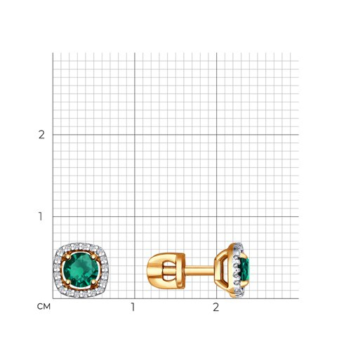 Серьги пусеты золотые пробы 585 с изумрудом гидротермальным SOKOLOV 727266