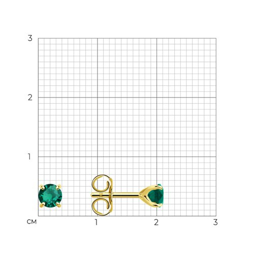 Серьги пусеты золотые пробы 585 с изумрудом гидротермальным SOKOLOV 727568-2