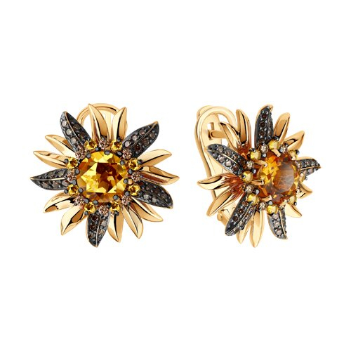 Серьги золотые пробы 585 с цитрином SOKOLOV 72-00565