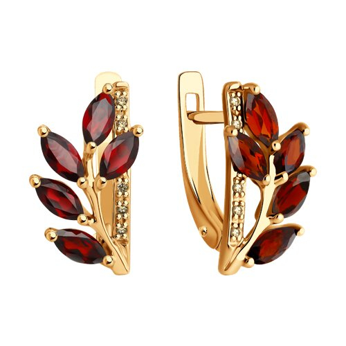 Серьги золотые пробы 585 с гранатом SOKOLOV 72-00328