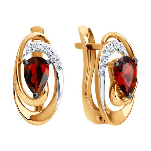 Серьги золотые пробы 585 с гранатом SOKOLOV 72-00526