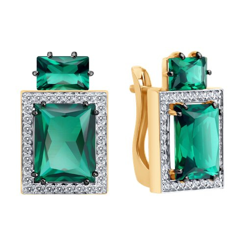 Серьги золотые пробы 585 с изумрудом гидротермальным SOKOLOV 72-00471