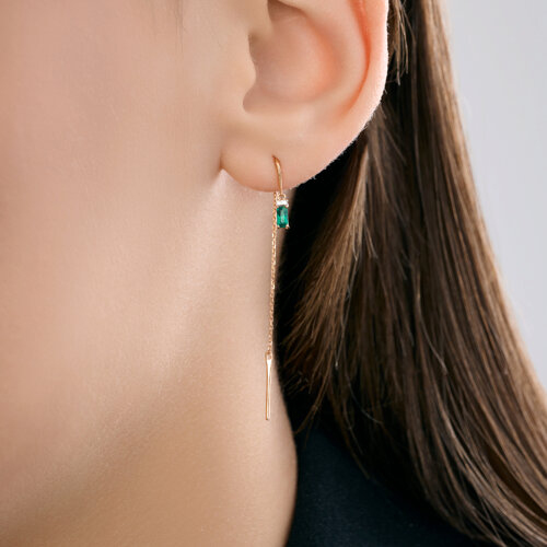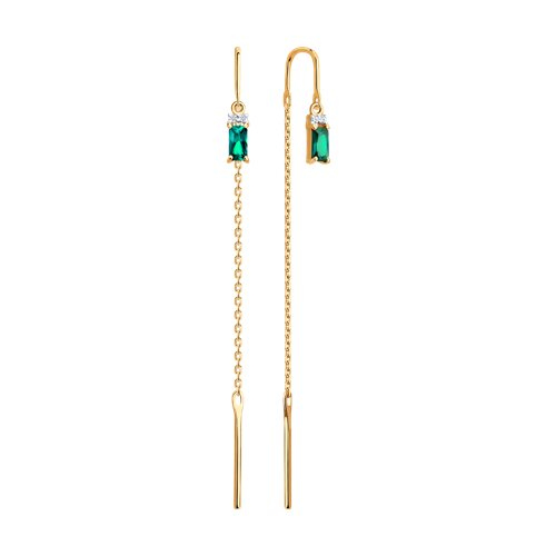 Серьги золотые пробы 585 с изумрудом гидротермальным SOKOLOV 72-00487