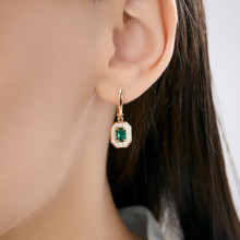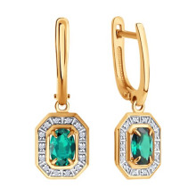 Серьги золотые пробы 585 с изумрудом гидротермальным SOKOLOV 72-00497