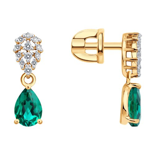 Серьги золотые пробы 585 с изумрудом гидротермальным SOKOLOV 72-00544