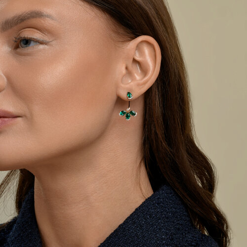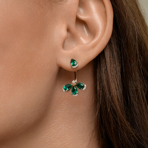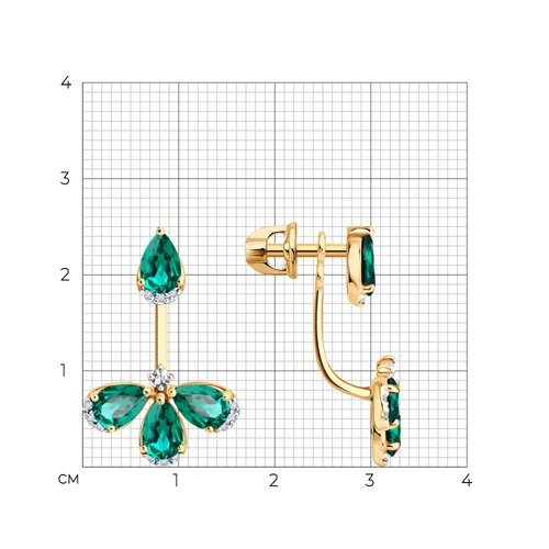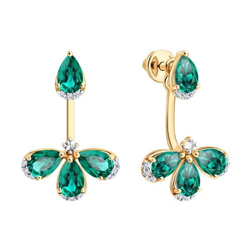 Серьги золотые пробы 585 с изумрудом гидротермальным SOKOLOV 72-00564