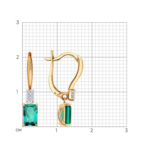 Серьги золотые пробы 585 с изумрудом гидротермальным SOKOLOV 72-00581