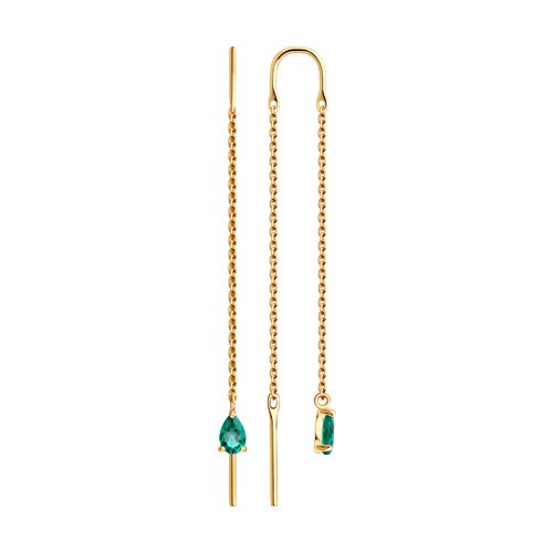 Серьги золотые пробы 585 с изумрудом гидротермальным SOKOLOV 72-00478