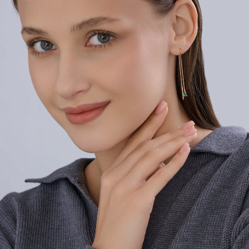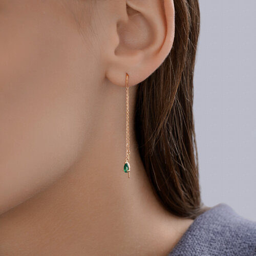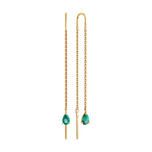 Серьги золотые пробы 585 с изумрудом гидротермальным SOKOLOV 729161