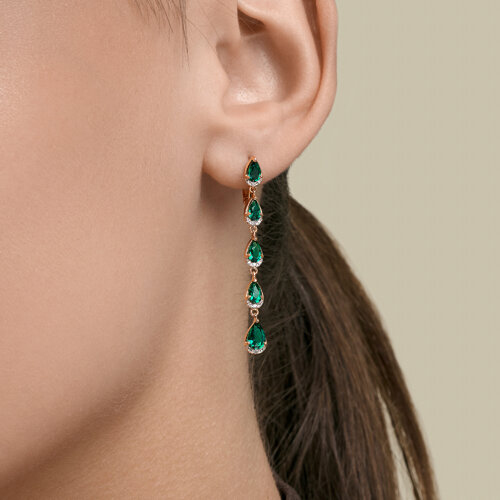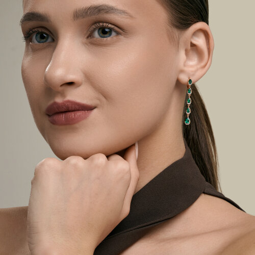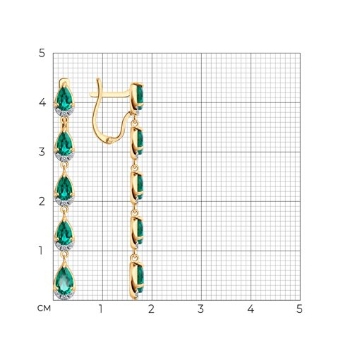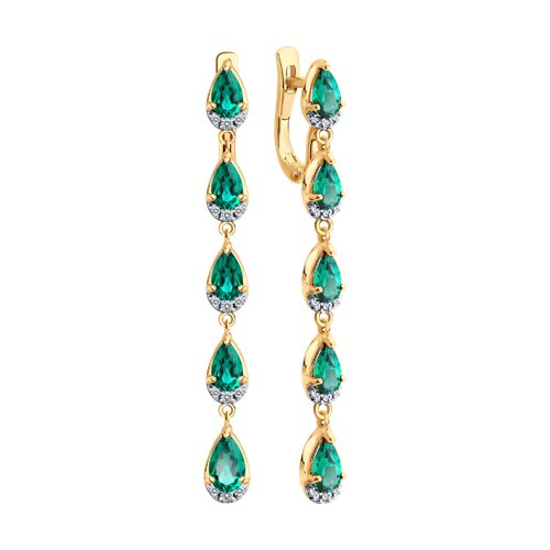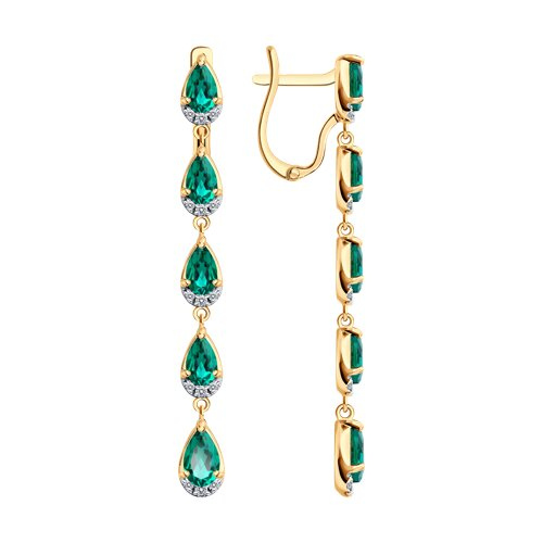 Серьги золотые пробы 585 с изумрудом гидротермальным SOKOLOV 729368