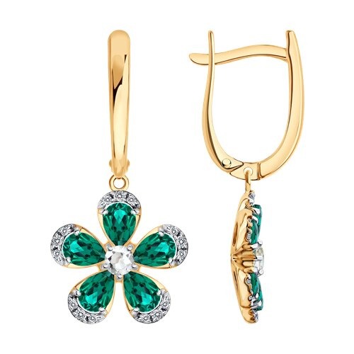 Серьги золотые пробы 585 с изумрудом гидротермальным SOKOLOV 729393