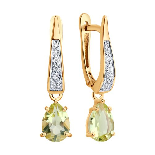 Серьги золотые пробы 585 с кварцем SOKOLOV 72-00475