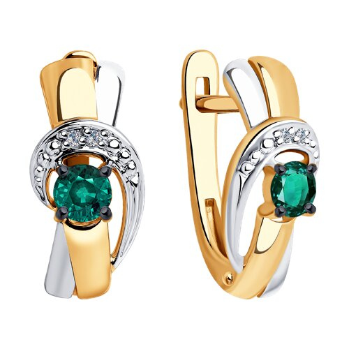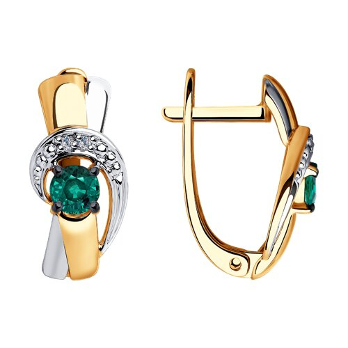 Серьги золотые пробы 585 с изумрудом гидротермальным SOKOLOV 72-00182