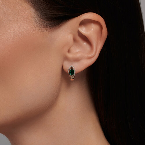 Серьги золотые пробы 585 с изумрудом гидротермальным SOKOLOV 72-00210