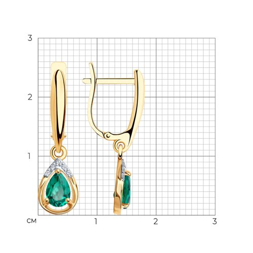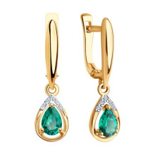 Серьги золотые пробы 585 с изумрудом гидротермальным SOKOLOV 72-00291