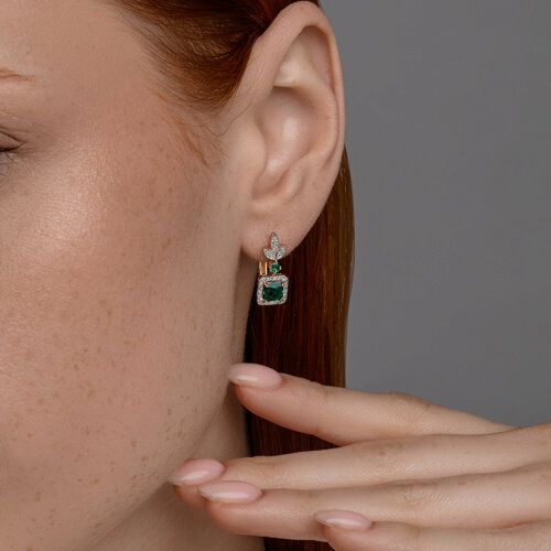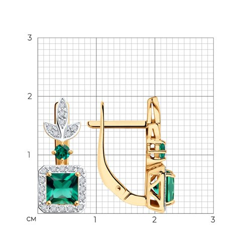 Серьги золотые пробы 585 с изумрудом гидротермальным SOKOLOV 72-00361