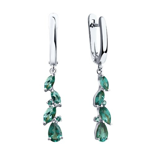 Серьги золотые пробы 585 с изумрудом гидротермальным SOKOLOV 727263-3