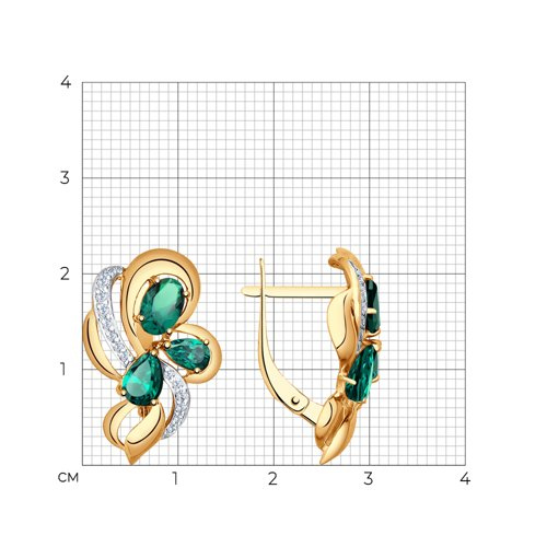 Серьги золотые пробы 585 с изумрудом гидротермальным SOKOLOV 727277