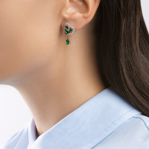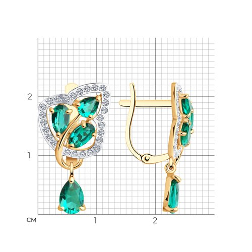 Серьги золотые пробы 585 с изумрудом гидротермальным SOKOLOV 727720