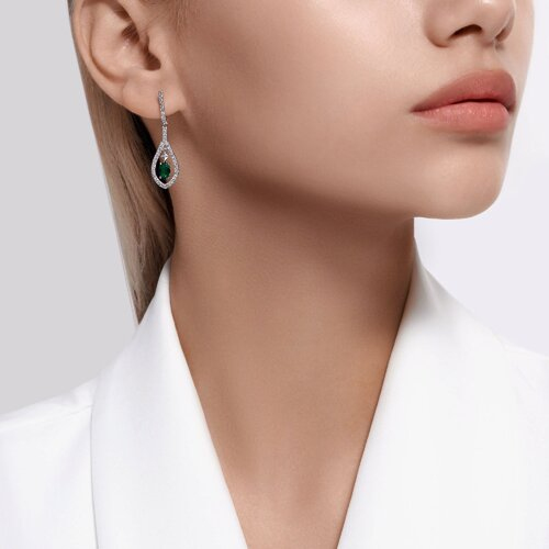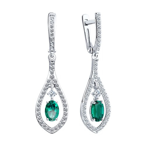 Серьги золотые пробы 585 с изумрудом гидротермальным SOKOLOV 728594-3