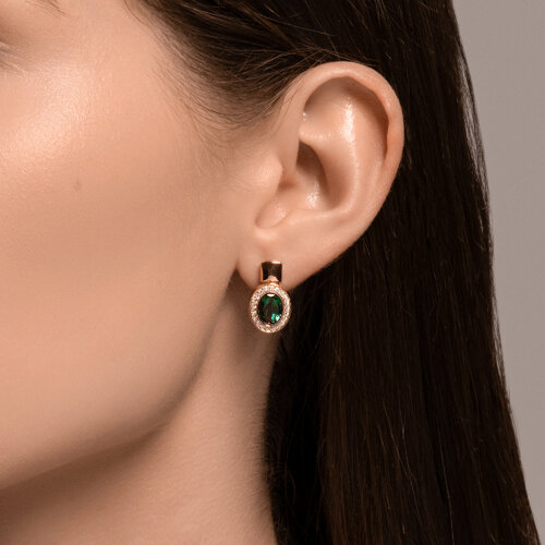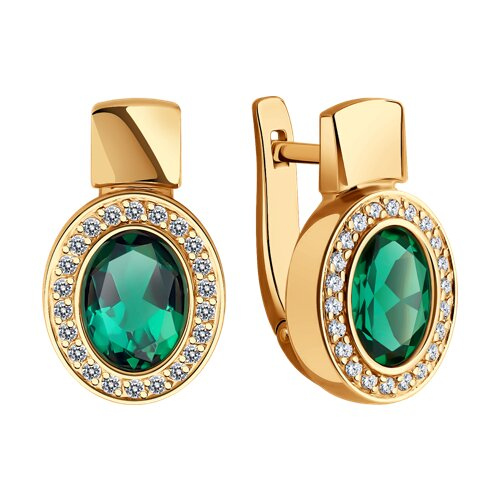 Серьги золотые пробы 585 с изумрудом гидротермальным SOKOLOV 728747