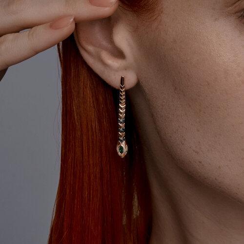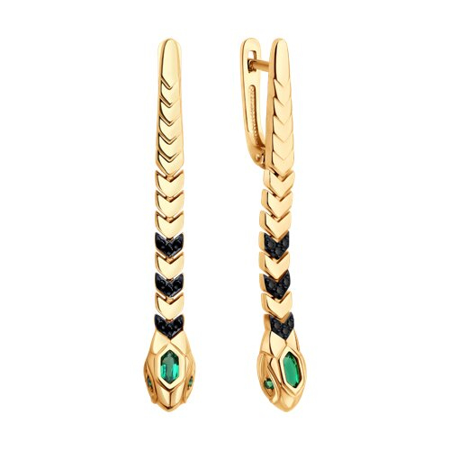 Серьги золотые пробы 585 с изумрудом гидротермальным SOKOLOV 728825
