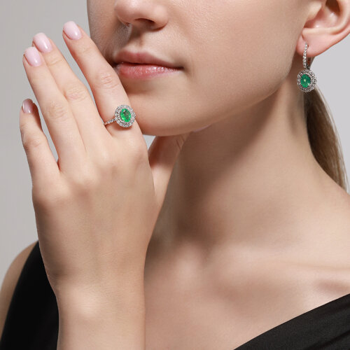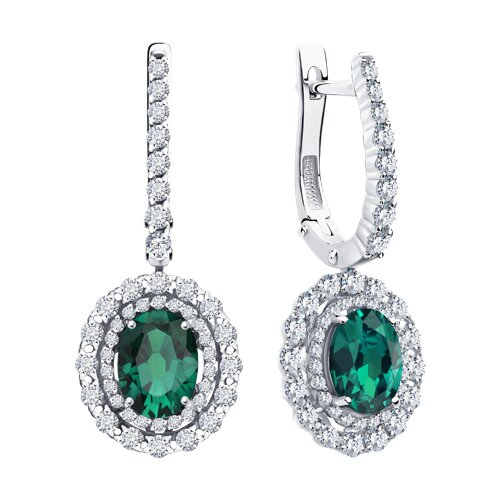 Серьги из белого золота с бриллиантами и изумрудами SOKOLOV 3020539-3