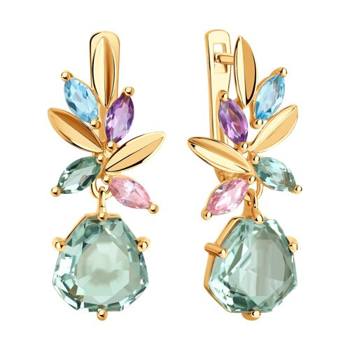 Серьги золотые пробы 585 с миксом камней SOKOLOV 727208