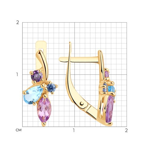 Серьги золотые пробы 585 с миксом камней SOKOLOV 727462