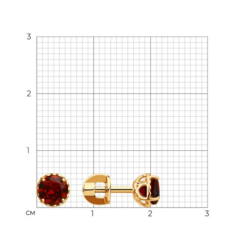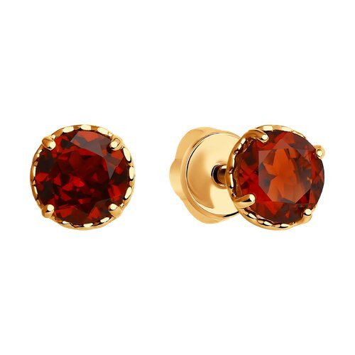 Серьги пусеты золотые пробы 585 с гранатом SOKOLOV 724197